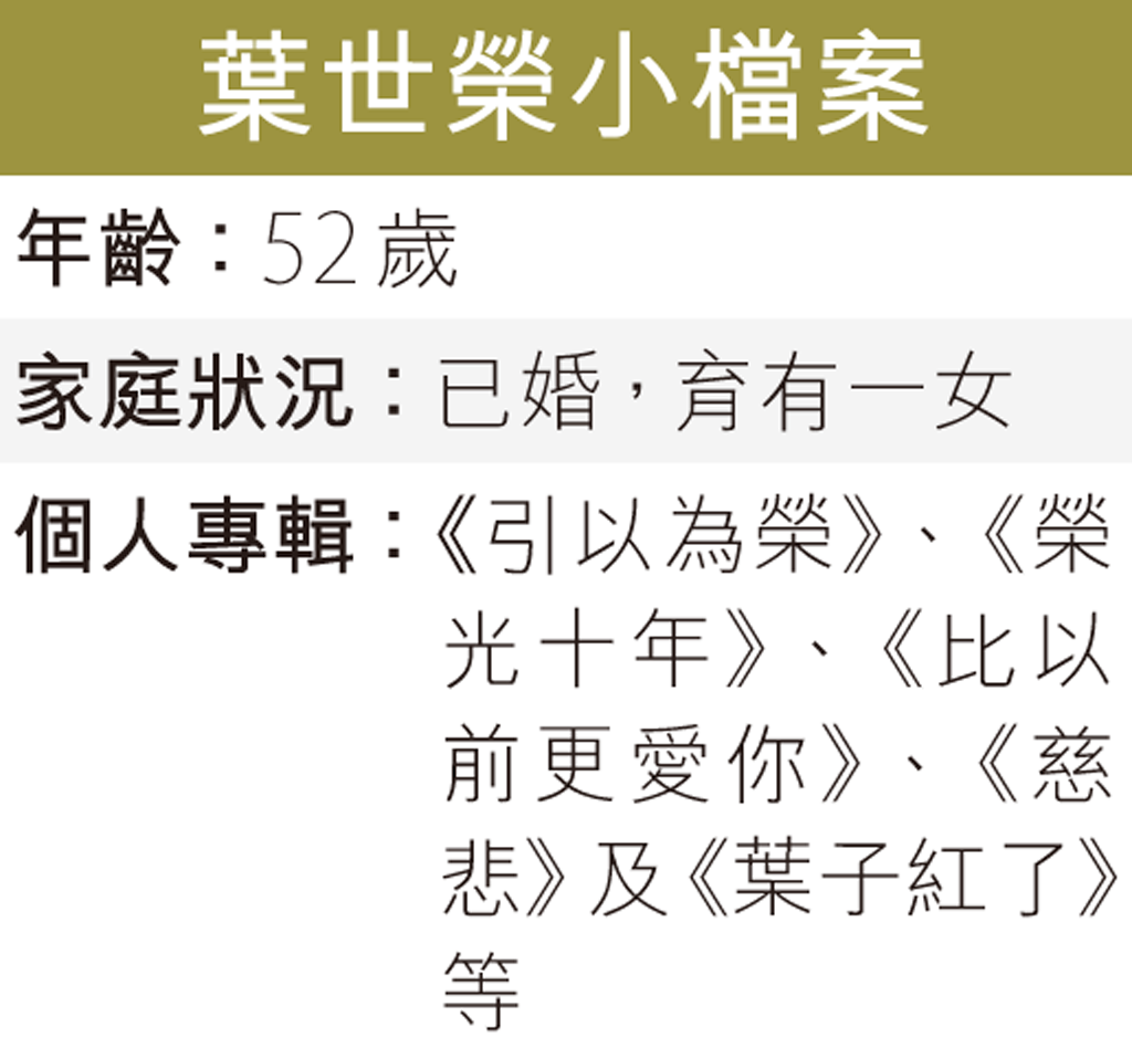 歲月如歌,52歲的葉世榮卻把年月的痕跡化在音符裏,面容保持在《海濶天空》的時代裏。