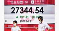 恒指單日轉向彈191 二萬七失復得 新經濟股再發力 人行出招推高夜期